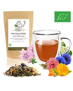 Composition: Rooibos nature, citronnelle, écorces d'orange, huile d'orange, fleurs de bleuet.